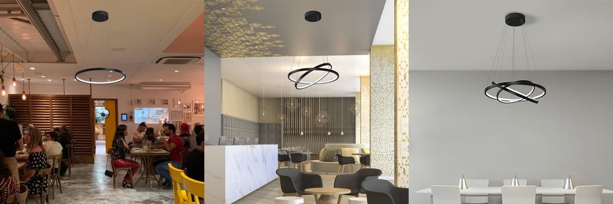 Para propostas mais tradicionais existem os lustres pendentes clássicos que entendem bem, mas se você procura uma opção mais moderna considere os lustres pendentes aneis LED.