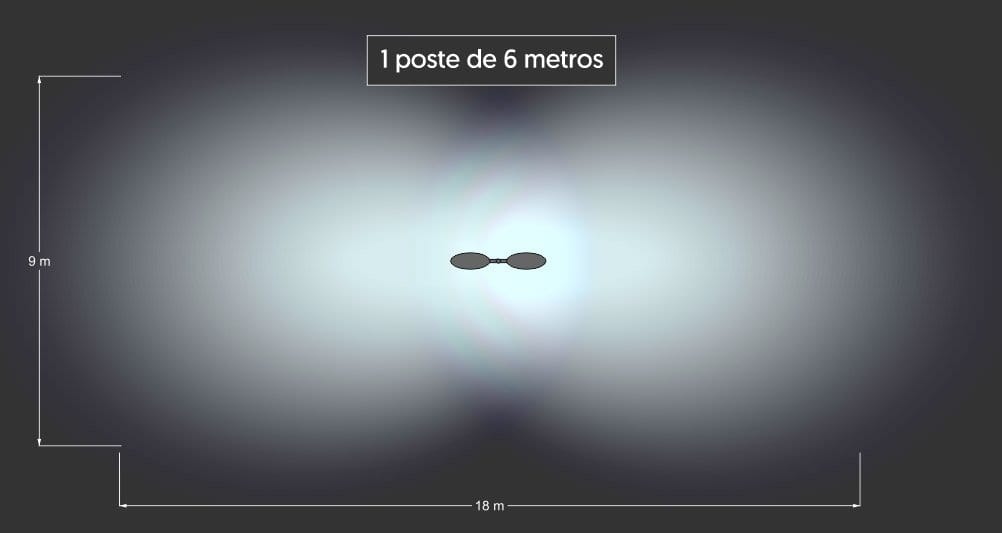 Com um poste de 6 metros a iluminação, obviamente é maior, mas vamos ver isso um pouco mais de perto.